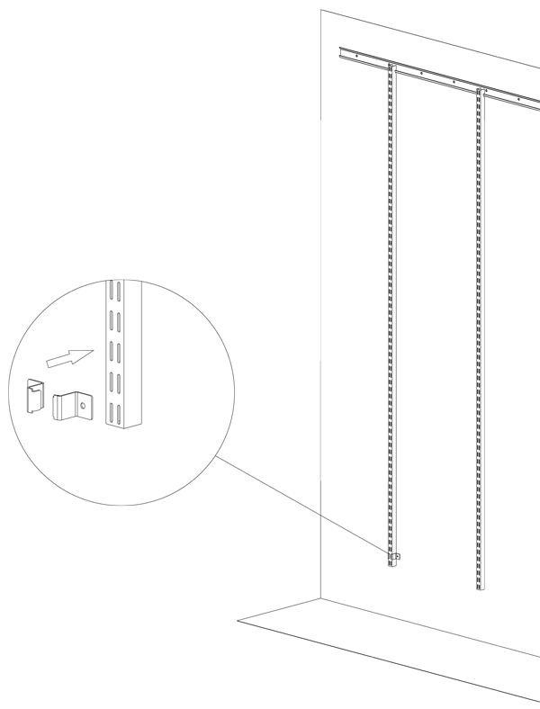 - после сборки гардеробной системы, крепим направляющую к стене специальными креплениями.